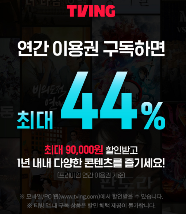 티빙은 요금제를 연간으로 구매하면 할인해주는 이벤트를 하고 있습니다.